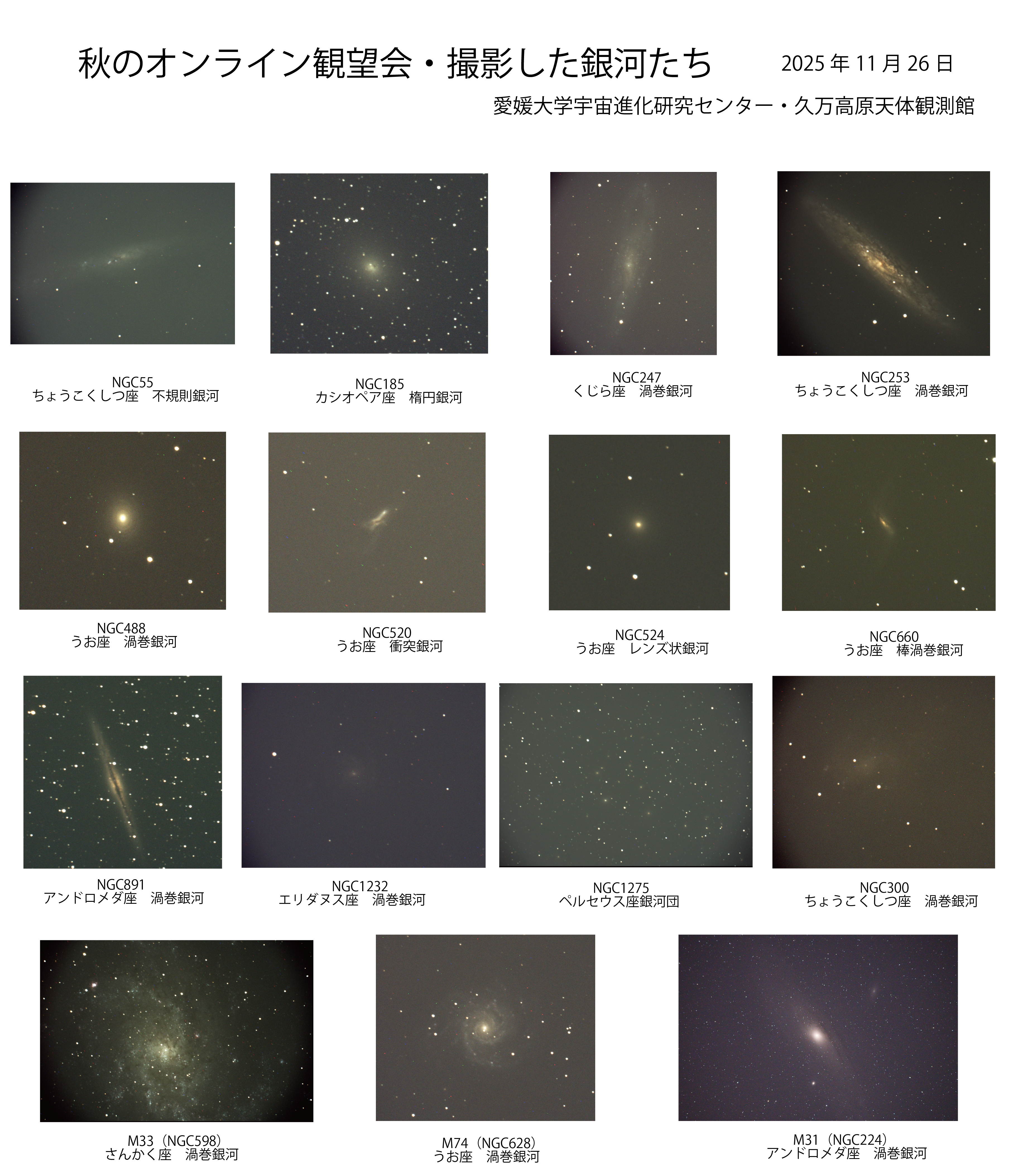 オンライン観望会(2025年11月)プレゼント画像 皆様へ 画像が2枚あります。銀河のまとめ画像1枚、星雲星団彗星が1枚です。 ダウンロードをお願いします。 ———————————————————- 銀河のまとめ画像 ———————————————————- 星雲星団彗星のまとめ画像 コメントを残す コメントをキャンセル メールアドレスが公開されることはありません。コメント 名前 メール サイト 上に表示された文字を入力してください。 宙ガールの観測会 第96夜・ふたご座流星群をねらえ!参加者募集中